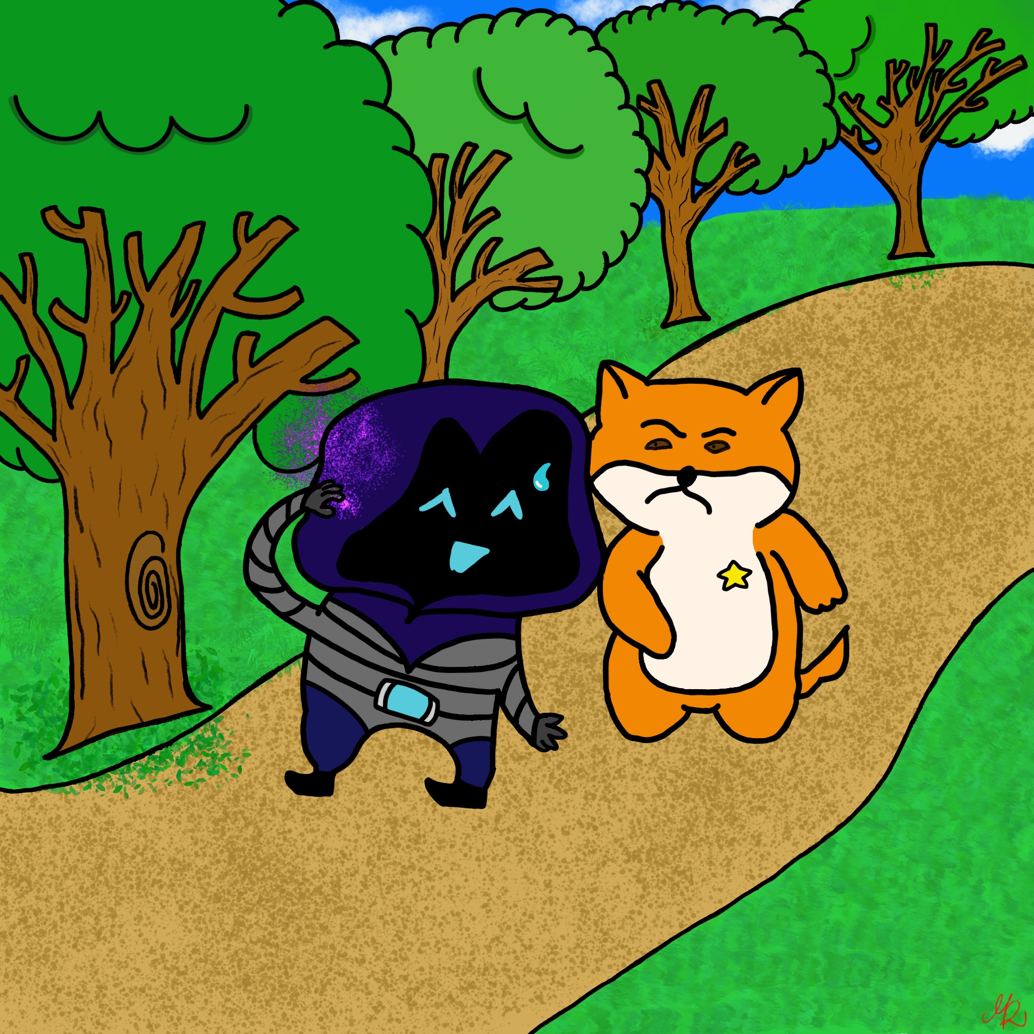 Es war ein sonniger Tag in der Stadt Ymacam. Die Vögel zwitscherten, und die Bäume wiegten sich sanft im Wind. Auf dem Kiesweg des Parks, schlenderte Kacki, eine kleine, schlaue Shiba-Inu Hündin, begleitet von ihrem Freund Omen, einem unscheinbaren Schattenwesen, das ständig Dinge vergaß. „Kacki, wohin wollten wir nochmal?“ fragte Omen und kratzte sich verlegen am Kopf, was dazu führte, dass Schattenfetzen um ihn herumwirbelten. Kacki seufzte. „Wir wollten zum Gym, Omen. Du hast es vor fünf Minuten erst gefragt!“. „Oh, richtig“, sagte Omen, seine Augen leuchteten kurz auf, bevor er erneut in Gedanken versank.